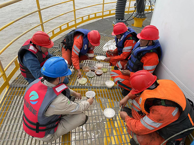 中秋、國(guó)慶“雙節(jié)”,在這樣一個(gè)闔家團(tuán)圓、舉國(guó)歡慶的日子里,鹽城國(guó)豐公司的風(fēng)電運(yùn)維班組放棄休假,在遠(yuǎn)離陸地67公里的大豐H5#海上風(fēng)電場(chǎng),用最質(zhì)樸的方式、最真切的行動(dòng),詮釋責(zé)任與擔(dān)當(dāng)。