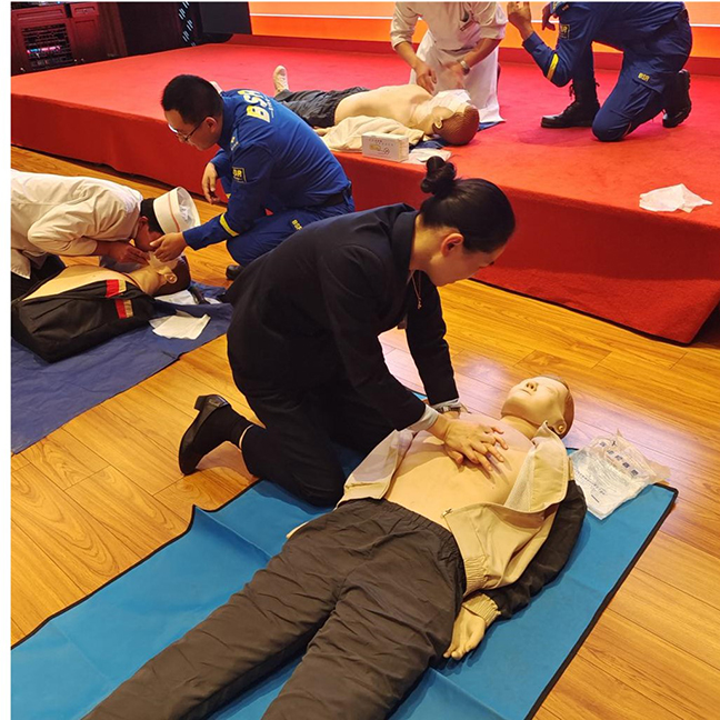 本次培訓(xùn)采取理論講解與實(shí)際操作相結(jié)合的方式。宣講員用通俗易懂的語(yǔ)言向大家介紹了學(xué)習(xí)急救知識(shí)的必要性、正確的急救步驟和施救措施等相關(guān)知識(shí)。在實(shí)操環(huán)節(jié),藍(lán)天救援隊(duì)的同志們通過(guò)模擬演練、一對(duì)一指導(dǎo)等形式,重點(diǎn)講解和演示了心肺復(fù)蘇術(shù)、海姆立克急救法、創(chuàng)傷處理等急救措施的規(guī)范操作。參訓(xùn)人員認(rèn)真聆聽(tīng)講解,并積極進(jìn)行實(shí)操練習(xí),逐步掌握了正確操作方法。