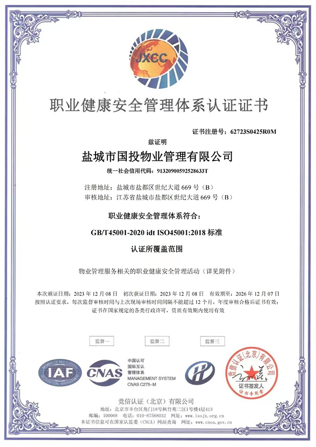 日前,鹽城國投物業(yè)公司順利取得ISO“三體系”(ISO9001質(zhì)量管理體系、ISO14001環(huán)境管理體系、ISO45001職業(yè)健康安全管理體系)認(rèn)證證書。這是公司在提升企業(yè)綜合實(shí)力過程中取得的新進(jìn)展,標(biāo)志著公司在精細(xì)化、制度化、規(guī)范化管理方面邁上新臺(tái)階。