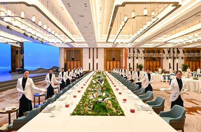 作為集團酒店板塊的主力軍,鹽城迎賓館更是以培育和踐行社會主義核心價值觀為核心,將精神文明建設(shè)作為推動企業(yè)高質(zhì)量發(fā)展的重要抓手,積極探索以精神文明建設(shè)賦能企業(yè)生產(chǎn)經(jīng)營的有效路徑。鹽城迎賓館累計開展學(xué)雷鋒文明實踐活動及志愿者服務(wù)活動達180余場次,涌現(xiàn)出62件感人至深的好人好事;全力支持服務(wù)所在地新時代文明實踐中心建設(shè),為畢業(yè)生和再就業(yè)人員提供各類服務(wù)多達454人次。同時,高質(zhì)量完成各類重要會議、重大活動以及重要接待等服務(wù)保障任務(wù),逐步形成了獨具特色、成熟完善的接待風(fēng)格,成功打造出在省內(nèi)外頗具影響力的接待基地金字招牌和酒店服務(wù)品牌,精心描繪一幅新時代精神文明建設(shè) “迎賓畫卷”,為不斷提升鹽城城市形象增光添彩。